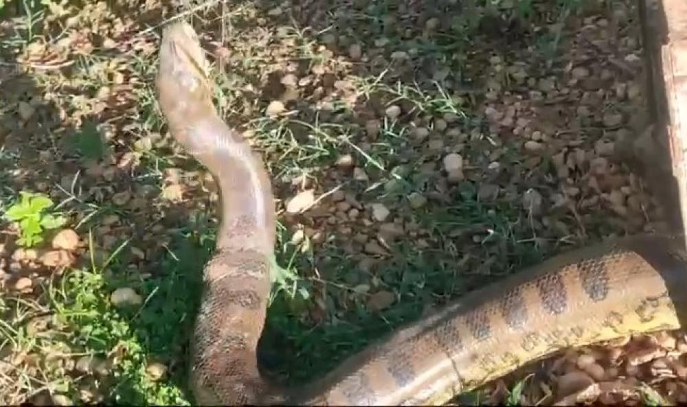 Sucuri de quatro metros é resgatada em açude na região de Itaporã