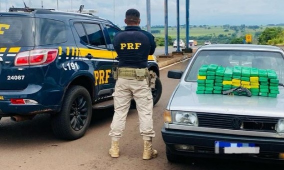 PRF apreende 47 kg de maconha e arma durante abordagem na BR-163 em Mundo Novo