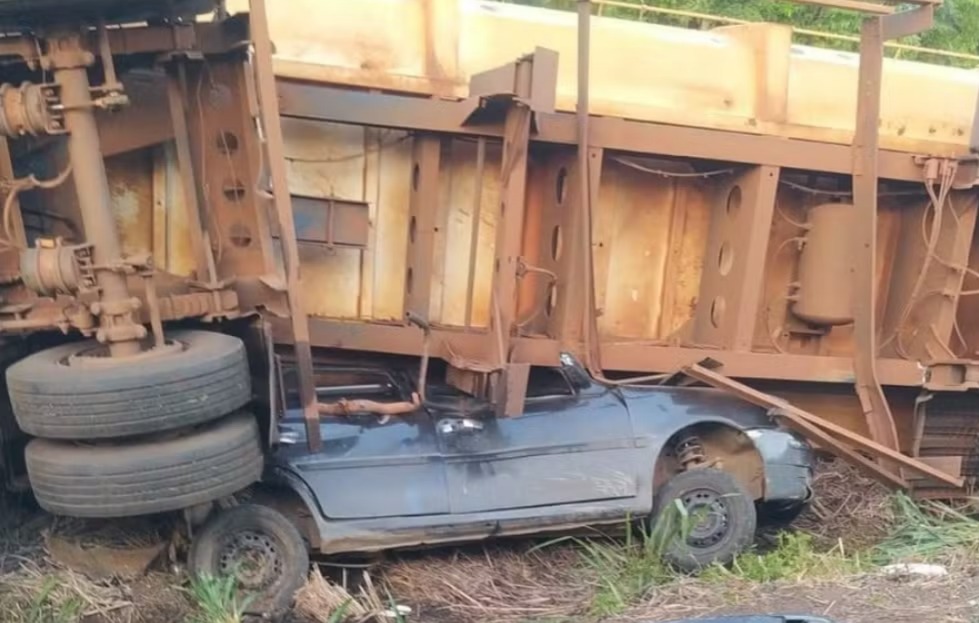Dois jovens morrem em acidente entre caminhões