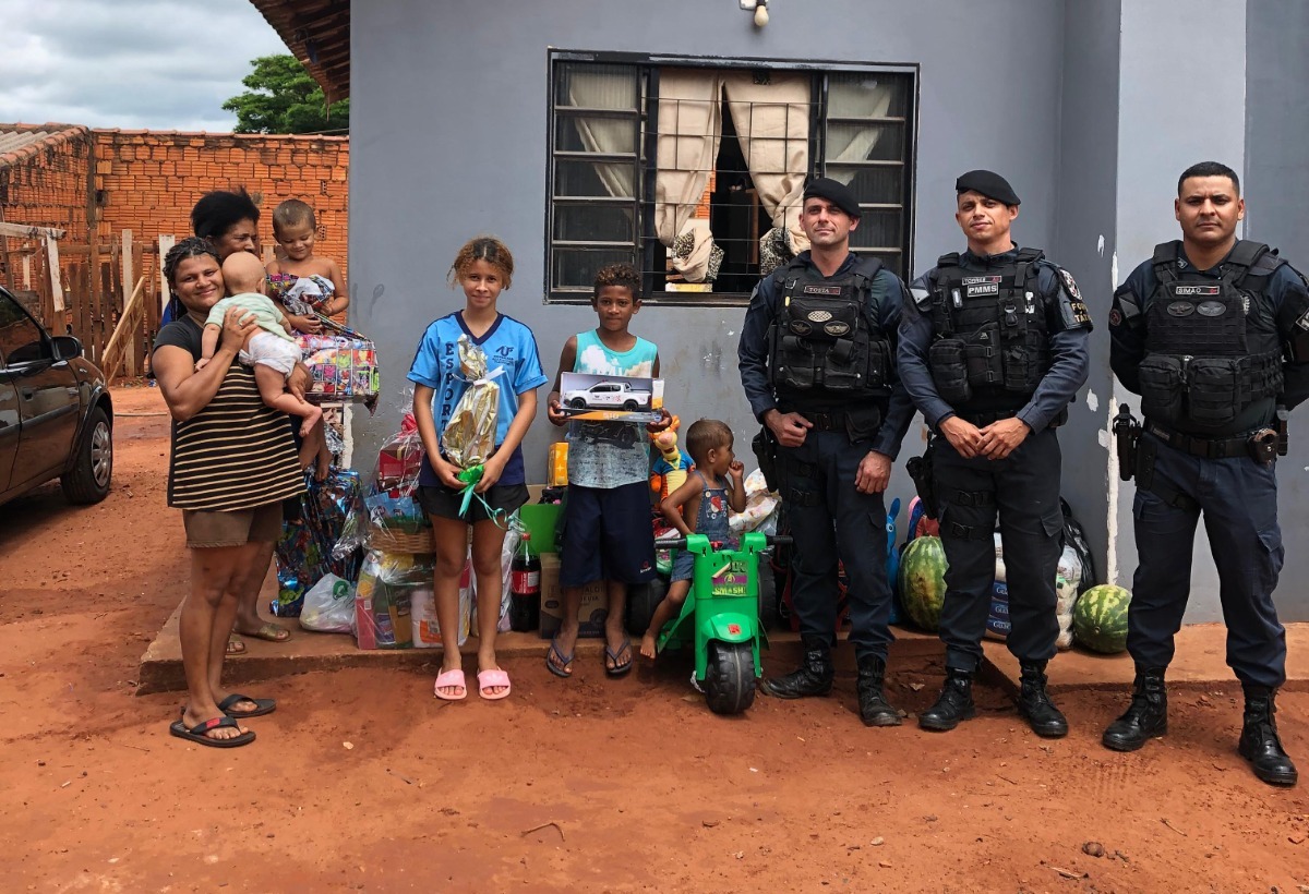 Tática Solidária: Policiais do 12º BPM entregam cestas básicas e brinquedos para a família em Naviraí