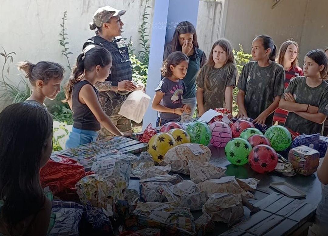 Polícia Militar Ambiental entrega presentes para crianças do Projeto Florestinha em Amambai