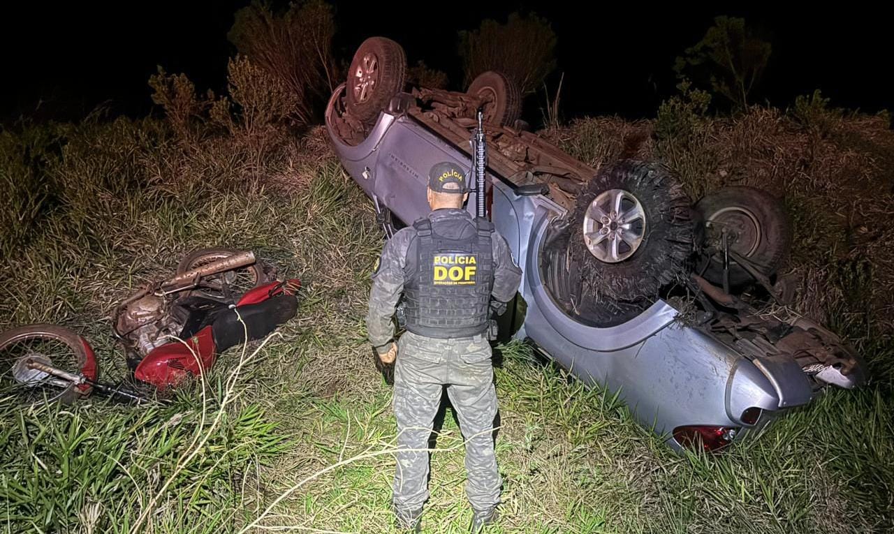 Três suspeitos são detidos após capotamento de caminhonete furtada em Iguatemi