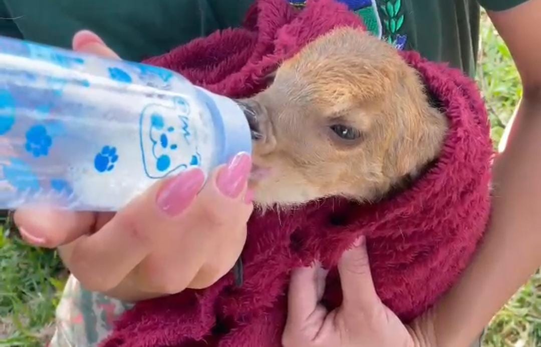 Polícia Militar Ambiental resgata filhote de veado-catingueiro em Ponta Porã