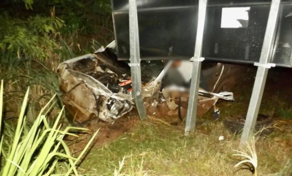 Com a força do impacto, o Gol rodou na pista e foi arremessado para a canaleta às margens da rodovia, ficando completamente danificado. O condutor do veículo, Kleber Aparecido Schnell, de 37 anos, operador de máquinas, não resistiu aos ferimentos e morreu no local.