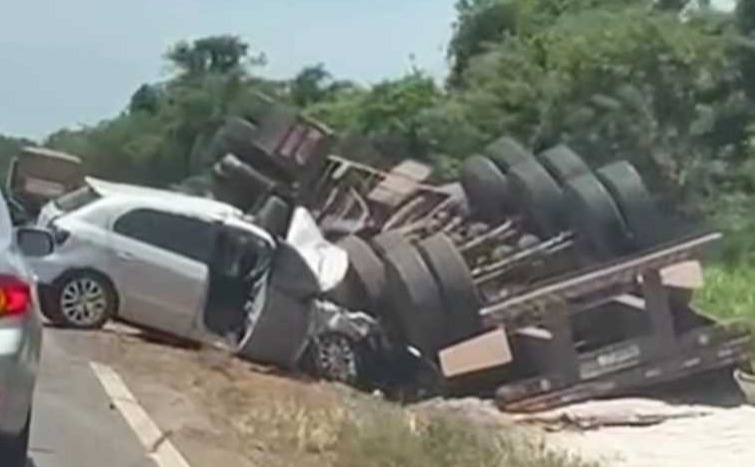 Acidente entre carreta e carro mobiliza equipes da PMR na MS-480