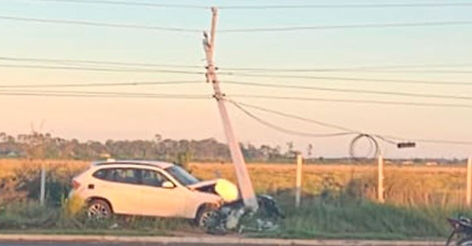 Motorista na contramão perde controle e colide contra poste em Campo Grande