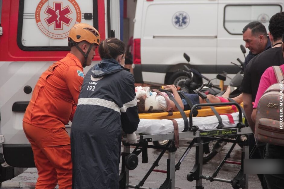 Criança é atropelada por motocicleta enquanto atravessava faixa de pedestre em frente à Escola Dom Bosco
