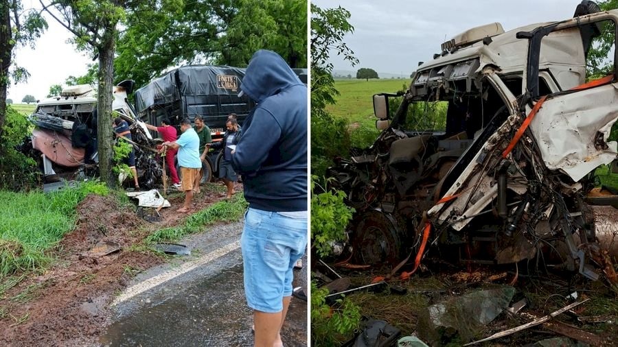 Carretas de transportadora colidem após desvio por árvore caída na PR-182
