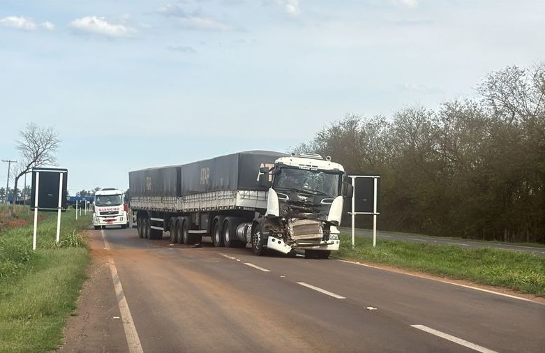 Colisão entre caminhões paralisa trecho da MS-134 entre Batayporã e Nova