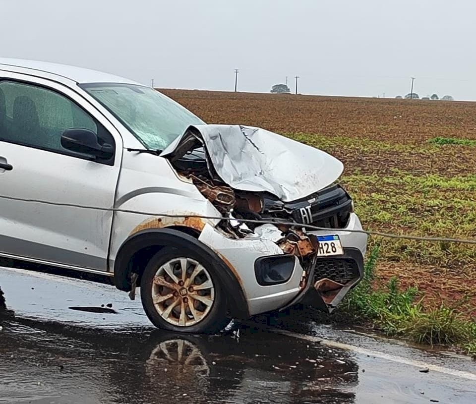 Colisão entre carro e micro-ônibus deixa três pessoas feridas em Batayporã