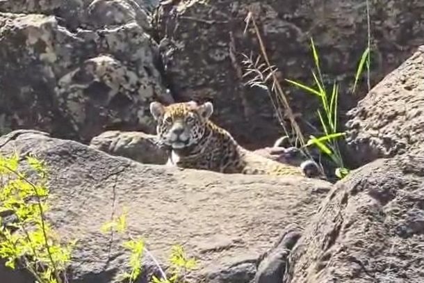 Onça-pintada é flagrada tomando sol às margens do Rio Iguaçu