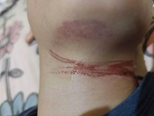 Menino se fere ao se enroscar em fio solto na saída de escola em Rio Brilhante