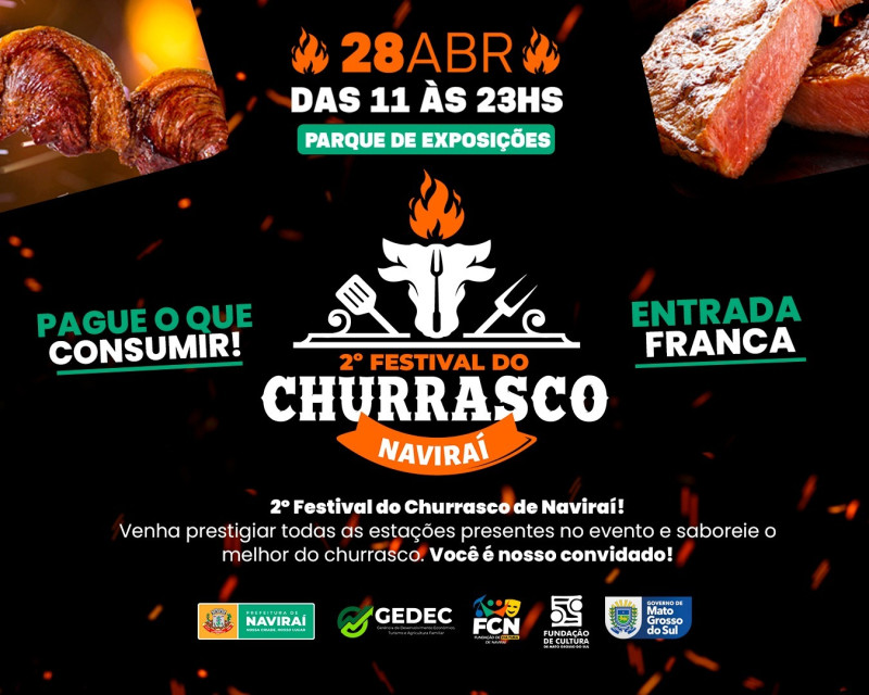 Com 12 horas de evento, 2? Festival do Churrasco de Naviraí acontecerá domingo no Parque de Exposições