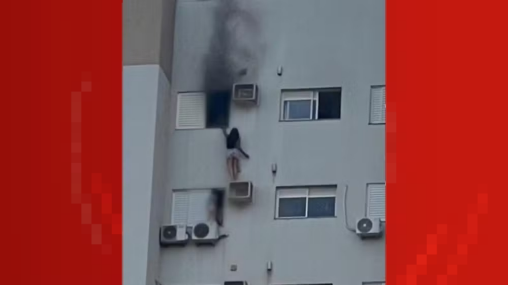 Mulher se pendura em suporte de ar-condicionado para salvar mãe e criança de incêndio em apartamento no Paraná