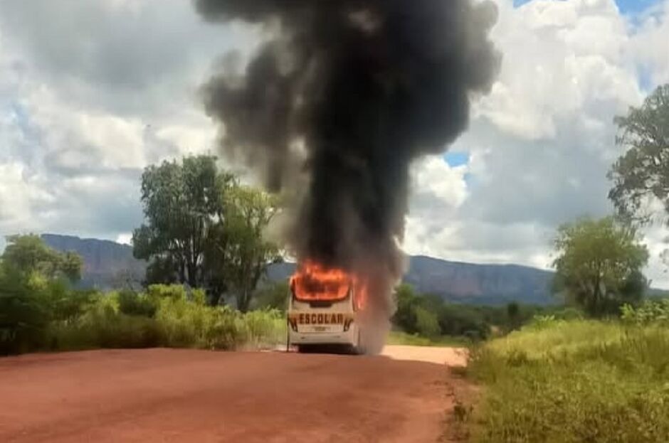 Incêndio atinge ônibus escolar e destrói parte do veículo em Aquidauana