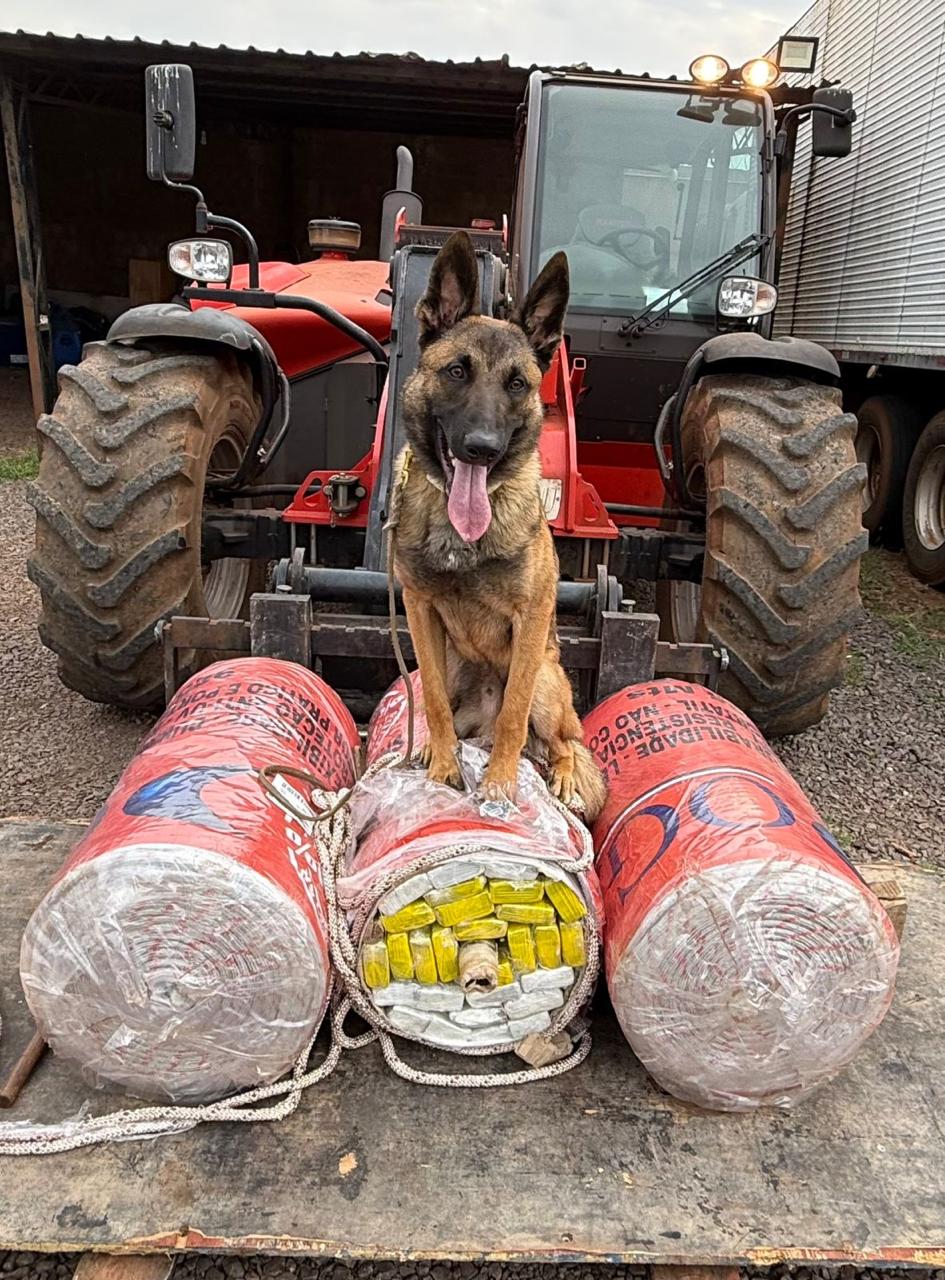Cães farejadores descobrem 242 kg de maconha escondidos em rolos de corda