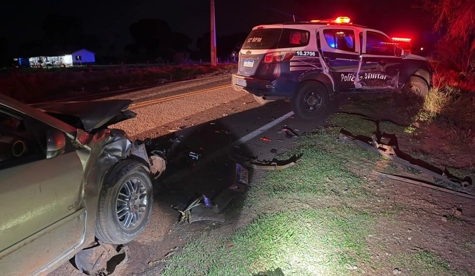 Viatura da PM sofre acidente em Novo Horizonte do Sul durante atendimento na rodovia MS-475