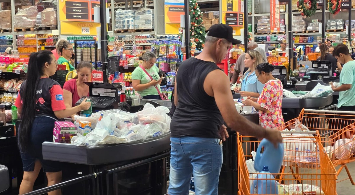 Consumidores aproveitam as promoções do “Dia F” na Rede Fogo Atacadista, que oferece descontos especiais. Foto: Portal do Conesul/José Luiz Bressa