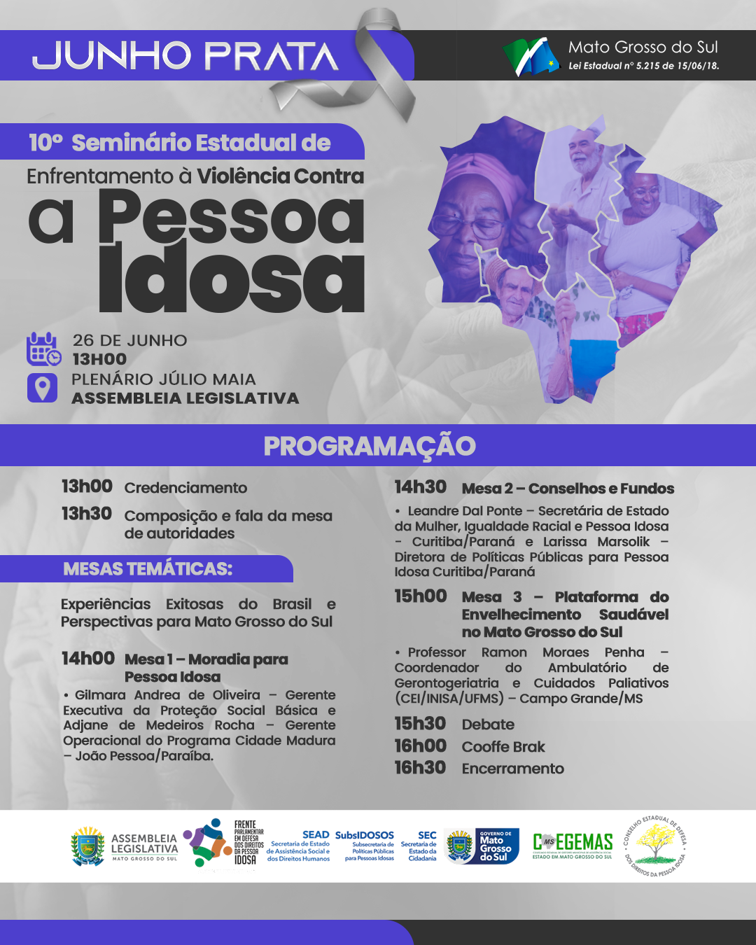 Nesta quinta-feira (26), a Assembleia Legislativa de Mato Grosso do Sul promove o 10º Seminário Estadual de Enfrentamento à Violência Contra a Pessoa Idosa. Realizado pela Frente Parlamentar em Defesa dos Direitos da Pessoa Idosa, presidida pelo deputado estadual Renato Câmara, o evento reúne especialistas de várias regiões do país, autoridades e representantes da rede de proteção para discutir soluções e práticas bem-sucedidas que promovam o envelhecimento com dignidade.