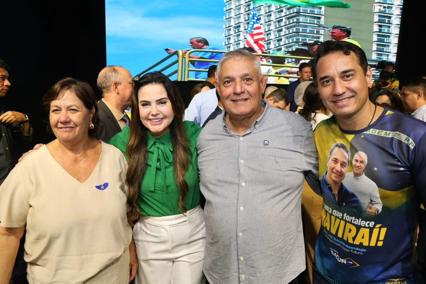 Prefeita Rosária, deputada Mara Caseiro, Portela, presidente do PL, e prefeito Rodrigo Sacuno participam de evento político, reforçando a união entre lideranças. Foto: Divulgação