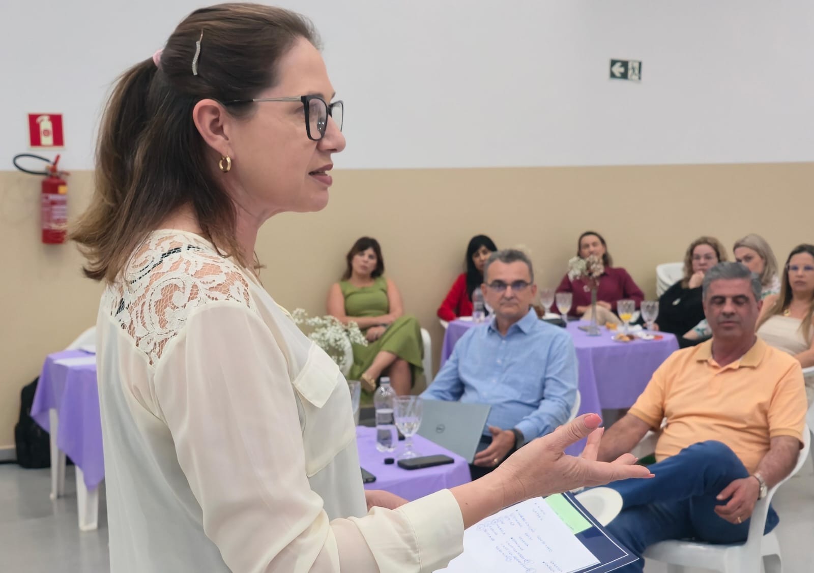 Sandra, coordenadora do Conselho da Mulher da ACEN, durante sua fala que destacou a importância das redes de apoio entre mulheres empreendedoras.