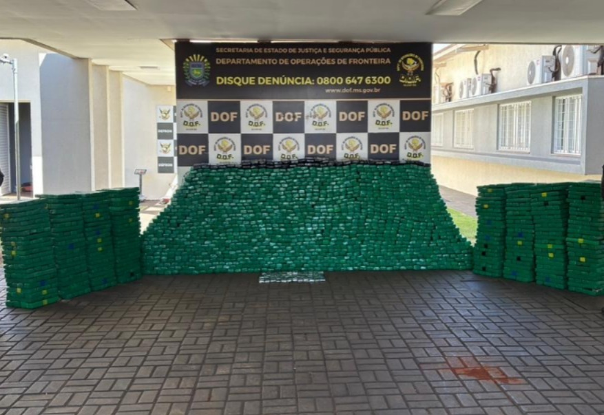 Policiais do Departamento de Operações de Fronteira (DOF) apreenderam, neste sábado (27), uma grande quantidade de drogas em Naviraí, durante uma ação de fiscalização na BR-487. A apreensão envolveu 1.600 quilos de maconha, além de skunk e haxixe, encontrados em uma caminhonete Toyota Hilux roubada no Paraná.