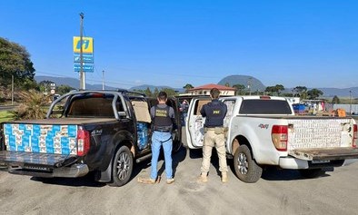 No mesmo horário, uma ação conjunta com a Polícia Federal na BR-373, em Prudentópolis, resultou na prisão de dois homens de 34 e 35 anos. Eles tentaram fugir em alta velocidade após a ordem de parada e foram alcançados em Guamiranga. Dentro de suas caminhonetes, foram encontrados 50 mil maços de cigarros.
