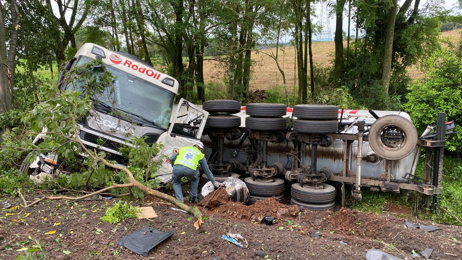 No local, as equipes do Corpo de Bombeiros e do Samu encontraram o condutor da carreta que ficou sobre a pista preso nas ferragens. Ele foi desencarcerado e apresentava diversas escoriações pelo corpo, além de ferimentos nas pernas. Após o resgate, o motorista foi encaminhado pelo helicóptero do Saer Fron ao Hospital Regional do Oeste (HRO), em Chapecó, para atendimento médico especializado.