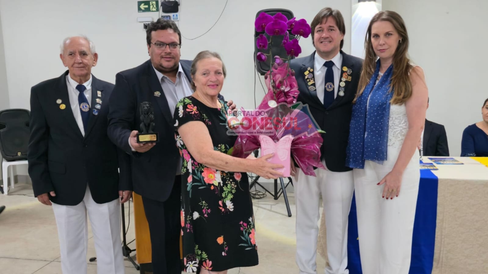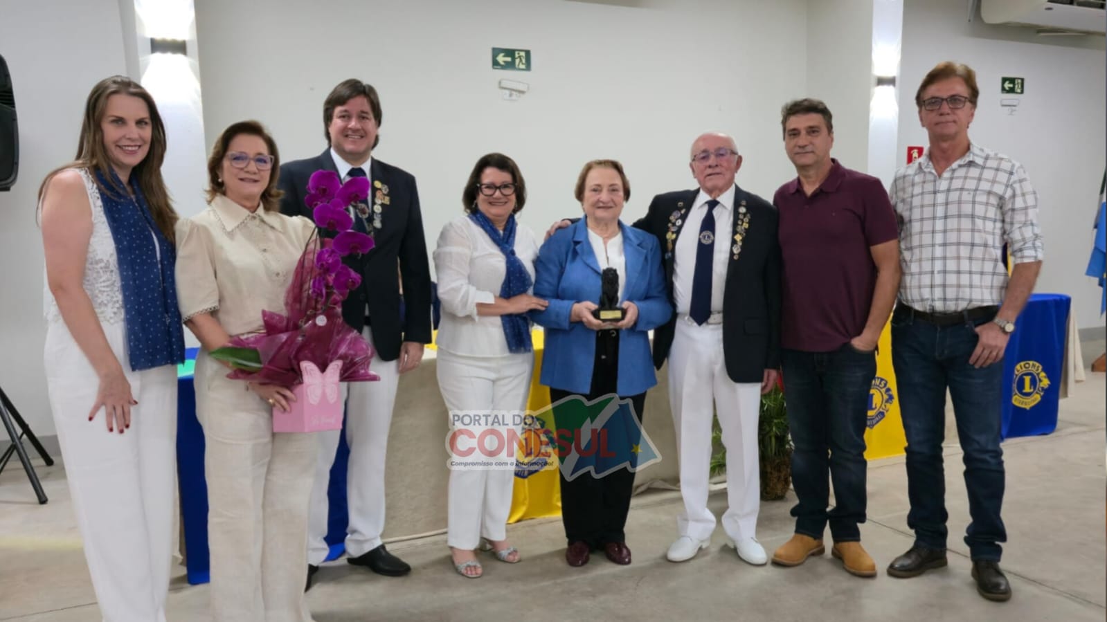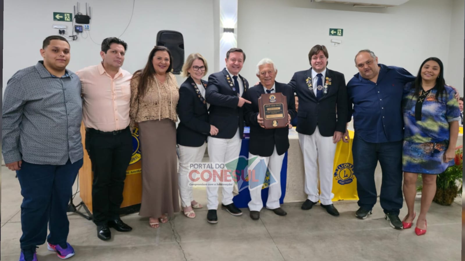 Homenagem especial à família do saudoso CL Paulino Farias, reconhecendo sua trajetória de dedicação e serviço ao Lions Clube de Naviraí. Crédito: José Luiz Bressa / Portal do Conesul.