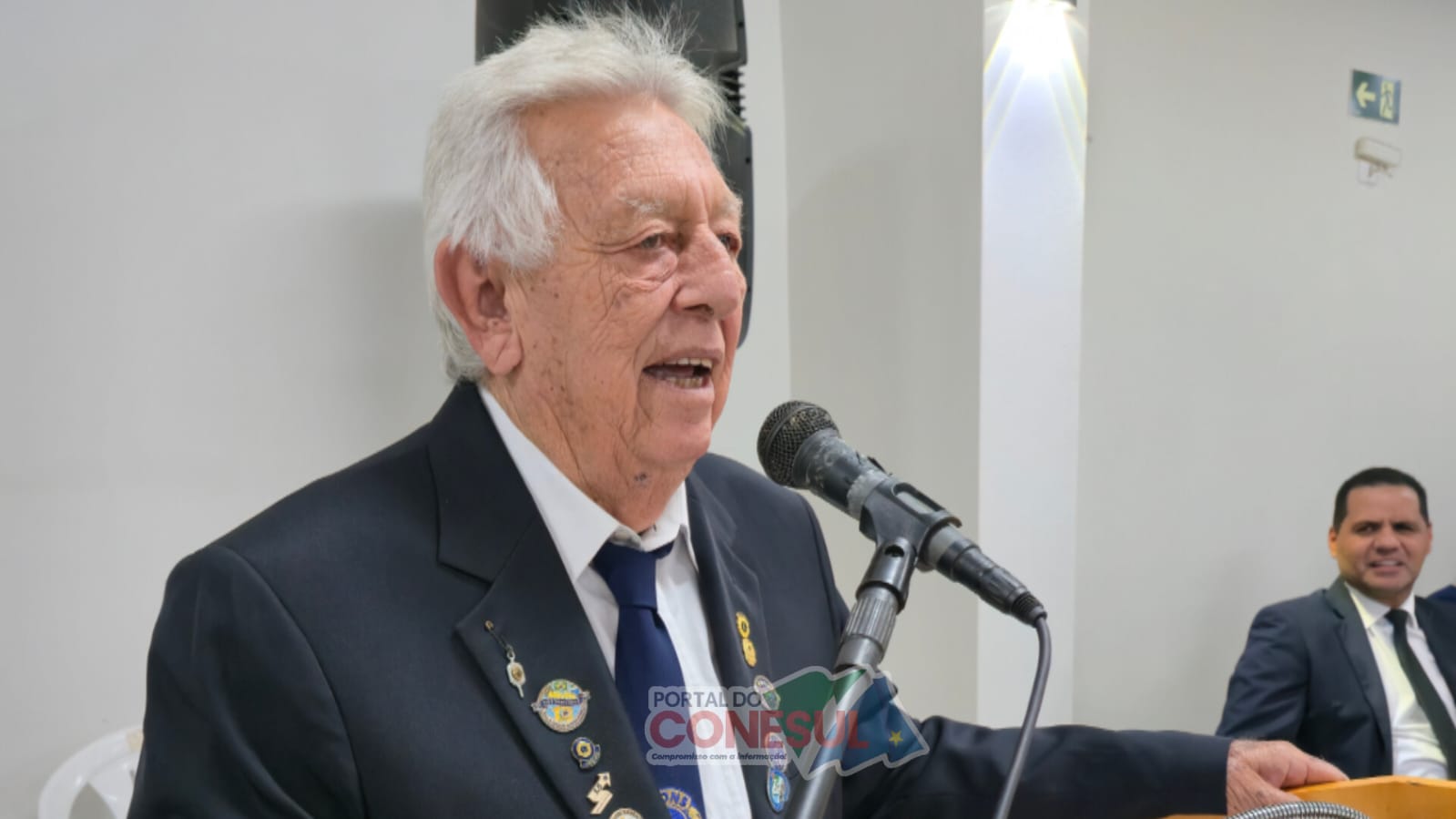 Pedro Martins durante seu discurso de agradecimento ao receber o Título Melvin Jones Crédito: José Luiz Bressa / Portal do Conesul.
