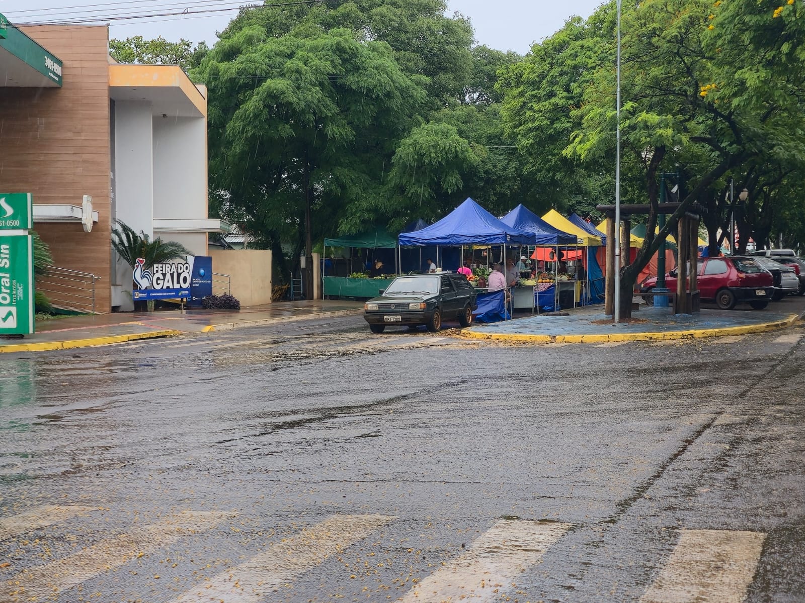 Feira do Galo em Naviraí mesmo sob chuva, reunindo barracas de produtos locais e artesanato. Foto: José luiz Bressa Tonini.