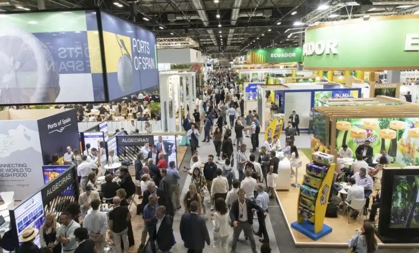 Pavilhões lotados durante a Fruit Attraction Madrid 2025, que reuniu produtores e compradores de diversos países (Foto: Divulgação).