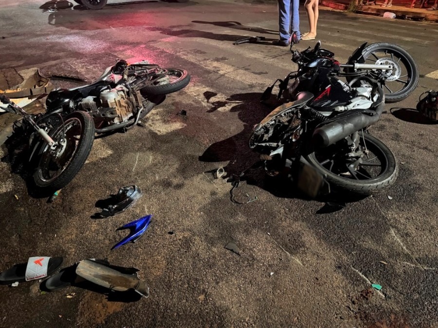 De acordo com as informações apuradas no local, duas motocicletas — uma Honda CG 150, com placa Mercosul, e uma Honda 160 — seguiam pela Rua Oswaldo Casarotti quando colidiram com um Chevrolet Spin, que trafegava pela Rua Enedino Manoel da Cruz.