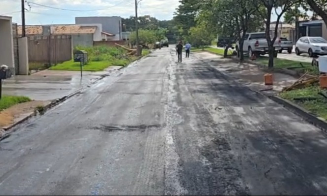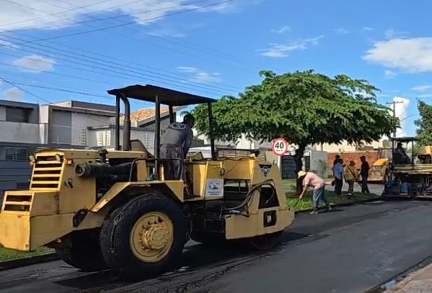 José Luiz Bressa: Imagens da malha asfáltica sendo reconstruída na Avenida Mata Atlântica para o recapeamento.