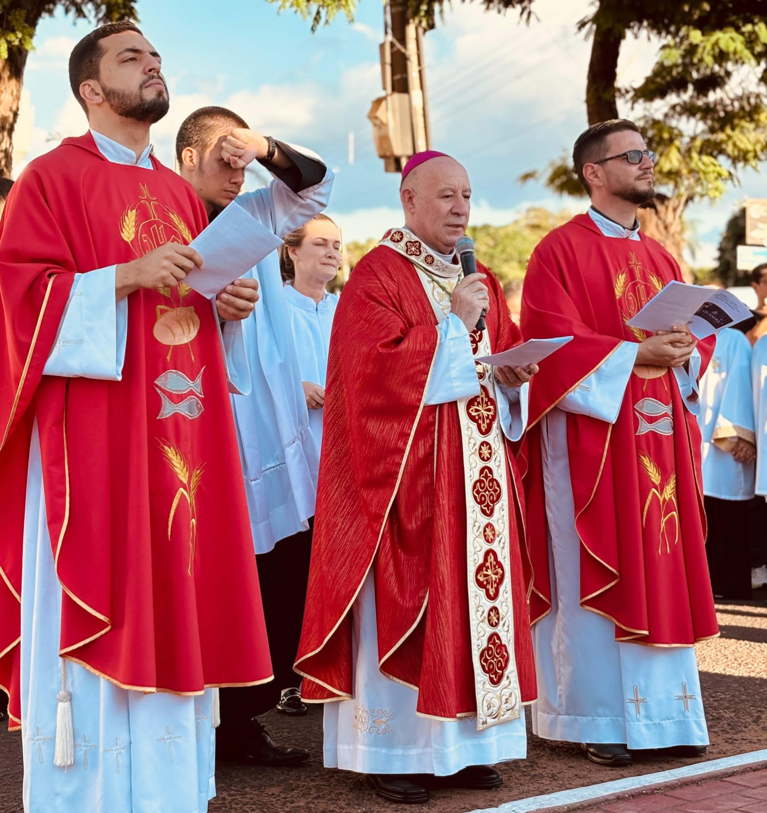 O trajeto foi acompanhado pelo bispo diocesano Dom Ettore Dotti, pelo pároco Padre Marcos Paulo Fernandes, pelo vigário Padre Mateus Teixeira, além de ministros da comunidade e coroinhas.