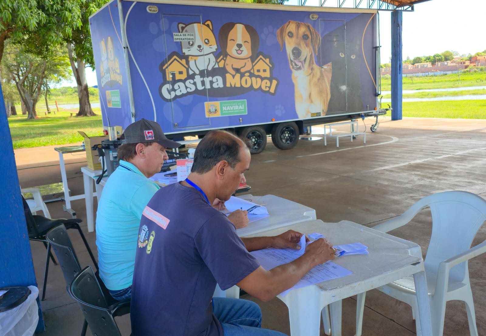 Equipe do Castramóvel realiza atendimento de cães e gatos no Balneário Municipal de Naviraí (Foto: José Luiz Bressa/ @portaldoconesul)