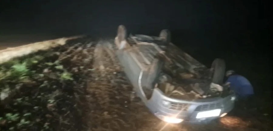 Gol capota na BR-060 e motorista é socorrido em Paraíso das Águas
