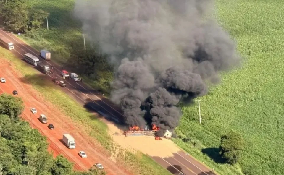 Acidente entre carro e caminhão interdita trecho da BR-277 no Paraná