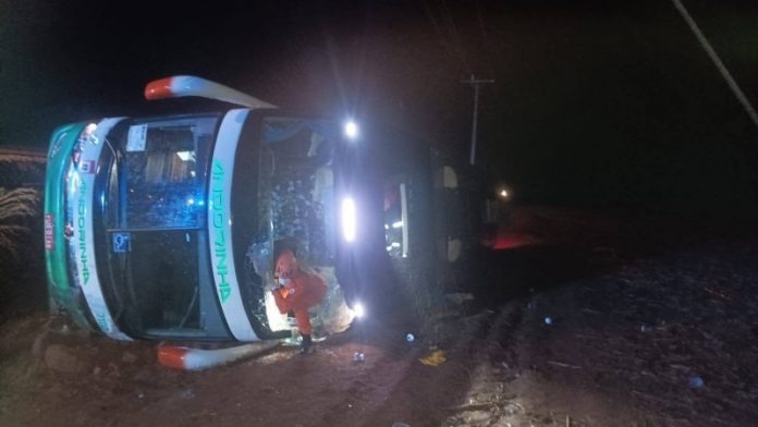 Ônibus da Andorinha tomba na BR-070 em Primavera do Leste e deixa seis feridos