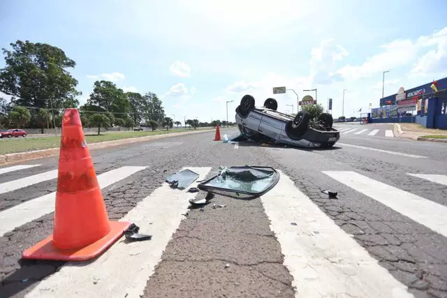 Família escapa ilesa após carro capotar em avenida de Campo Grande