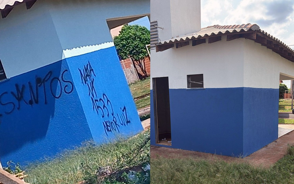 Prefeitura restaura quiosque pichado e faz apelo à população