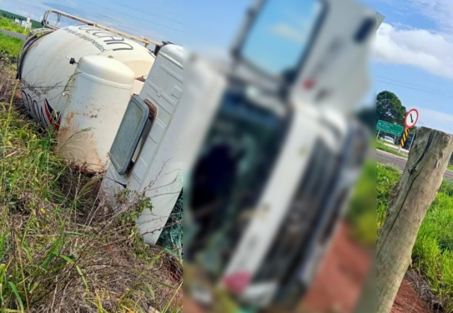 Caminhão tomba na MS-316 em acesso a Paraíso das Águas